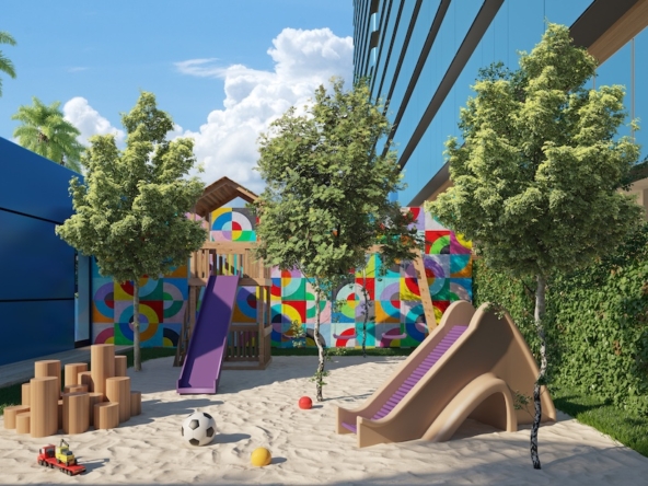 The project features studios, 1- 2 and 3-bedroom apartments with: